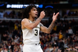 本场比赛,密歇根后卫卡多手感不佳,但有效盘活球队进攻,打了33分钟17投5中,三分7中3拿到13分5篮板10助攻4抢断,也有6失误。