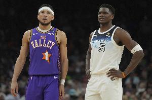 太阳战绩来到43胜36负,根据规则,太阳已无法反超森林狼,将确定参加附加赛,森林狼锁定季后赛。
