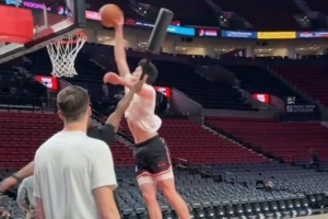 GIF-杨瀚森赛前暴扣,与队友撞胸