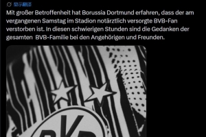 体育资讯4月15日讯 多特官方发文,悼念在比赛期间不幸离世的球迷。