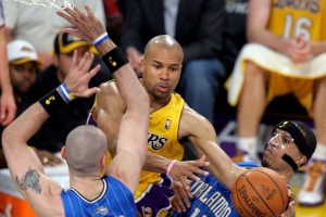 帕金斯说:“有这么一个家伙,虽然我个人私下里跟他合不来,但我必须以一个球员的身份向他致敬……当你谈论那种能随时开启和关闭模式的能力,谈论82场常规赛球员和16场季后赛球员的区别时。那个人绝对是德里克·费舍尔。德里克·费舍尔在他职业生涯的大部分时间里,看起来就像是全联盟最差的首发控球后卫之一。但当需要他挺身而出,在科比和奥尼尔身边,或者在科比和加索尔身边打季后赛时,那家伙绝对会站出来。他瞬间就完成了蜕变。