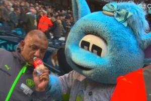 比赛开始前,转播镜头拍摄到上一轮比赛中爆火的曼城球迷Tal Rehman本轮再次来到曼城主场,他依旧带上了那个著名的阿森纳标志水瓶,与曼城吉祥物合影留念。