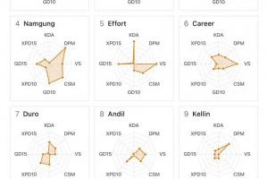 体育资讯4月20日讯 近日外网网友分享了LCK第三周的选手数据图,其中T1仅辅助选手Keria发挥较为出色,此前ShowMakr的数据图略显抽象,而更抽象的deokdam成一个点!