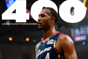 比赛来到第二节,骑士球员小莫布里已砍下10分。至此,小莫布里的生涯季后赛总得分突破400分,来到405。