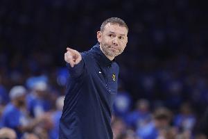 阿德尔曼:”是的,我认为这是真的。有趣的是,在当今的NBA,半场丢56分并不算太糟。那实际上可以说是NBA最好的防守了,所以只丢40分真的是荒谬的伟大,希望能每晚都打出这样的防守。但是我只是让大家尽量坚持比赛计划。赛后我在更衣室里告诉他们,有时候比赛计划可能行不通,我们会进行调整,但你至少得努力去实现我们所说的目标,然后我们可以采用联防,或者混合防守,或者交叉对位,或者做任何我们需要做的事情。我认为今晚球员们就是这么做的。你知道,前几天我们感到很沮丧,因为我们的进攻、失误等等,我们开始自己胡乱发挥。希望今晚的表现能成为我们在进入季后赛时保持一致的东西。你知道,我们必须先打进季后赛。这是一场值得回顾的好比赛。”